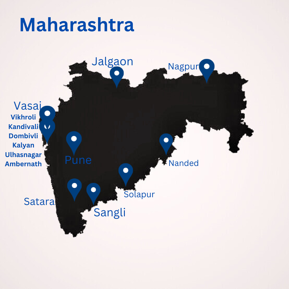 Kalyan, Dombivli, Ulhasnagar, Ambernath, Vikhroli, Kandivali, Vasai, Pune, Satara, Sangli, Jalgaon, Nanded and Nagpur.